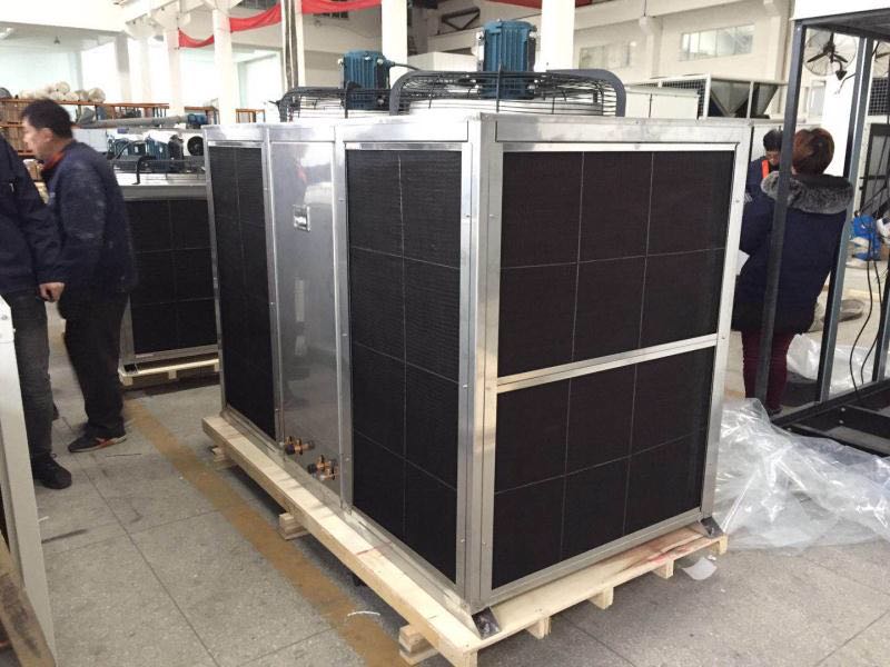 Fecha:2019-07-29 Unidad de condensador de personalización de un cliente Singapur está terminada!Características: tubo de cobre condensador de aleta de cobre, carcasa de acero inoxidable SS316L, compresores de scroll de marca conocida, componentes de Schneider Electric. La capacidad de enfriamiento es de 22kw 50kw y 58kw.